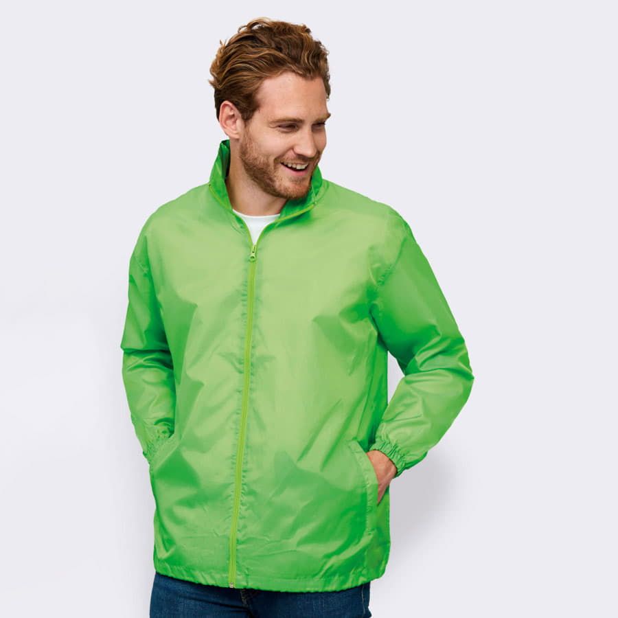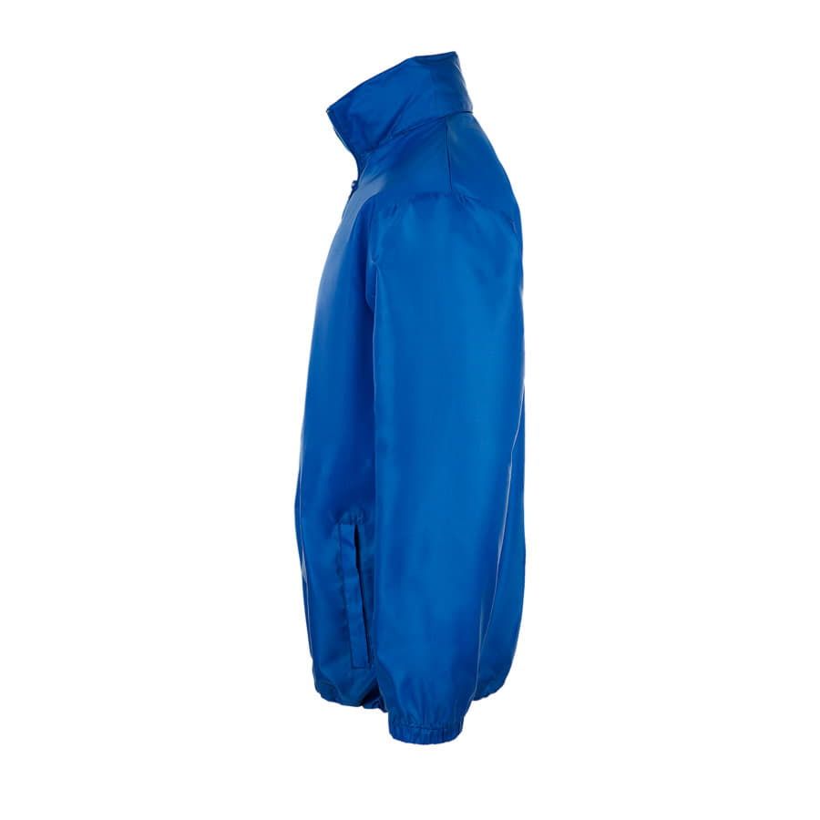 Легкая ветровка унисекс с облегченной пластиковой молнией. Воротник с убирающимся капюшоном. Эластичные манжеты на резинке. Цвет близкий к PANTONE 293C 7686C