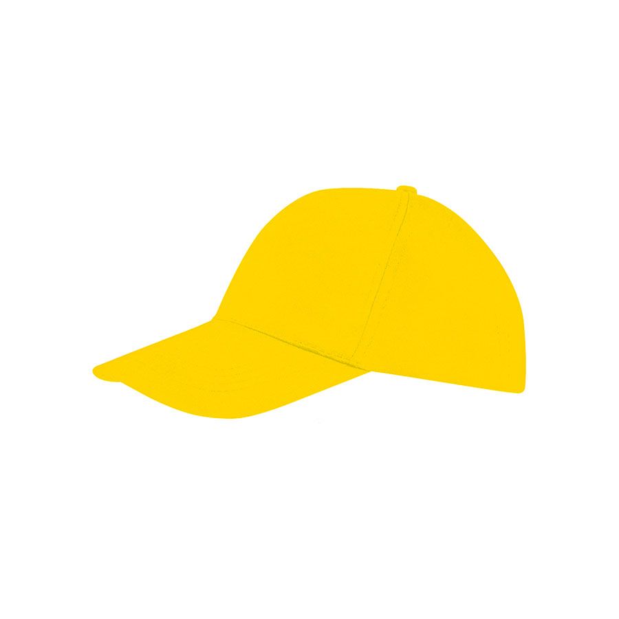 Бейсболка без лобового шва, 5 клиньев, 4 вышитых люверса, застежка-липучка.Цвет, близкий к PANTONE 1225C58,5 см - средний размер, с помощью застёжки его можно увеличить или уменьшить до необходимого.