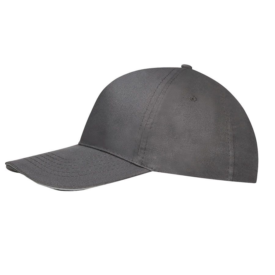 Бейсболка без шва на лбу, 5 клиньев, 4 вышитых люверса, двухцветный жесткий козырек "сэндвич" , застежка-липучка.Цвет, близкий к PANTONE: - светло-серый - темно-серый Cool gray 11C58,5 см - средний размер, с помощью застёжки его можно увеличить или уменьшить до необходимого.