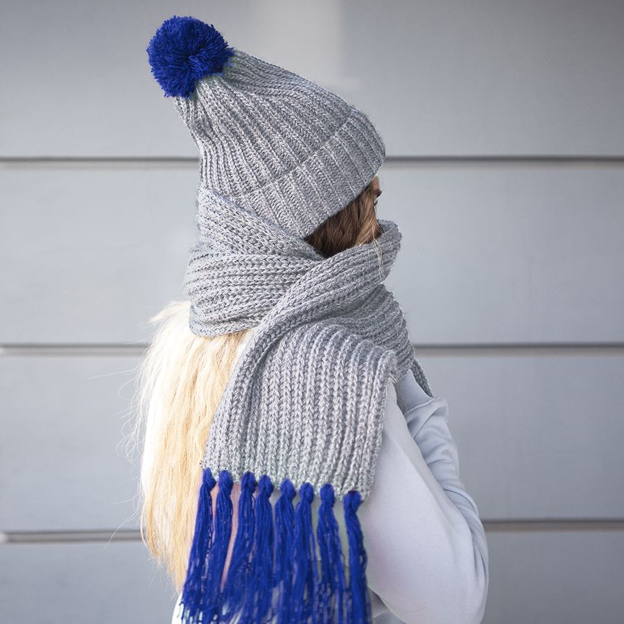Мягкий, пушистый и уютный комплект из шарфа и шапки поможет согреться вам в холодное время года. Светло-серый цвет нейтрален и очень комфортен в носке. Благородый серый ассоциируется с компромиссом, спокойствием и стабильностью. Почувствуйте магическое влияние серого цвета в сочетании с яркой отделкой!Цвет помпона и кисточек близкий к Pantone 287C.