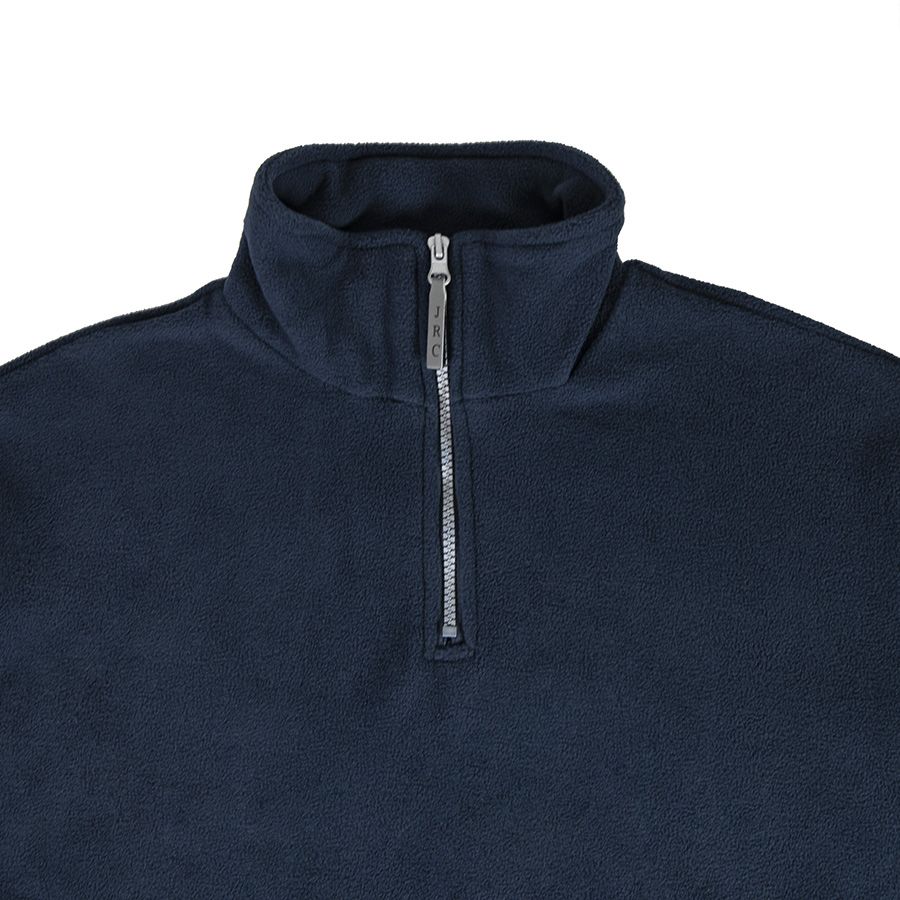 Основная ткань: цвет, близкий к Pantone 2767 C Утепленная толстовка повышенной плотности. Удобный воротник-стойка на молнии. Светоотражающий съемный пуллер с символикой JRC. Два кармана на молнии. Утягивающий шнурок по низу изделия. Эластичные резинки по низу рукавов.