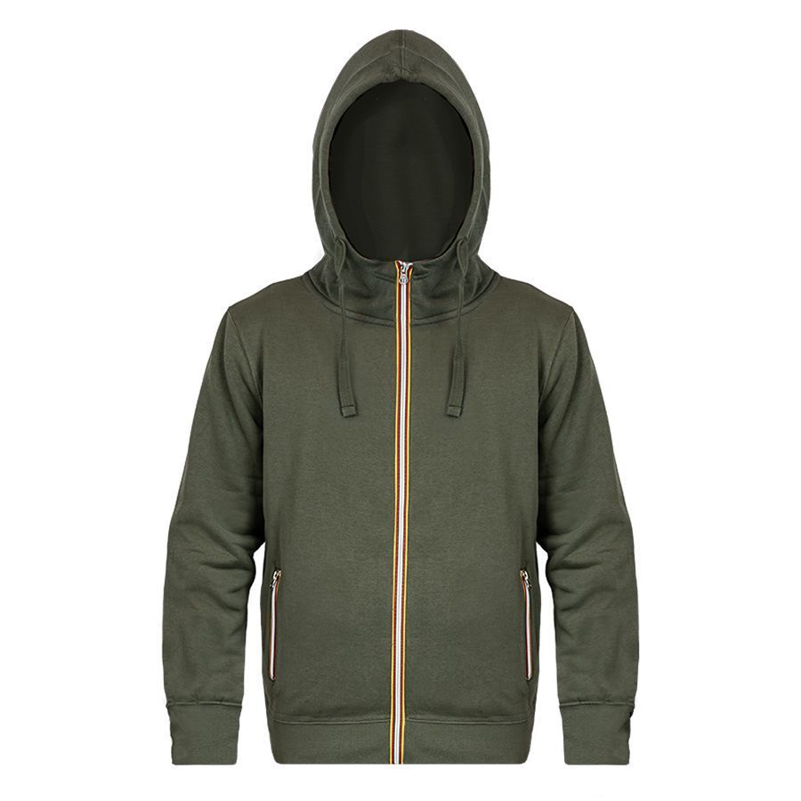 Комфортная толстовка худи на молнии LAS VEGAS MAN из футера с начёсом, плотностью 280 г м² и смесовым составом: 65% полиэстера и 35% хлопка. С таким составом изделия не деформируются и служат долго. Капюшон с подкладом и удобным высоким воротником-стойкой. Шов горловины усилен мягкой лентой Низ толстовки и рукава из эластичной рибаны. Основная молния и молнии в боковых карманах - контрастные. Материал: футер с начёсом, 65% полиэстера и 25% хлопка, 280 г м².