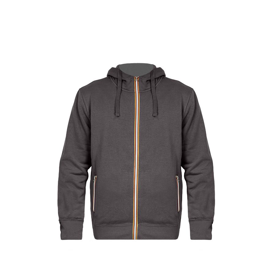 Комфортная толстовка худи на молнии LAS VEGAS MAN из футера с начёсом, плотностью 280 г м² и смесовым составом: 80% хлопка и 20% полиэстера. С таким составом изделия не деформируются и служат долго. Капюшон с подкладом и удобным высоким воротником-стойкой. Шов горловины усилен мягкой лентой Низ толстовки и рукава из эластичной рибаны. Основная молния и молнии в боковых карманах - контрастные. Материал: футер с начёсом, 80% хлопка и 20% полиэстера, 280 г м².