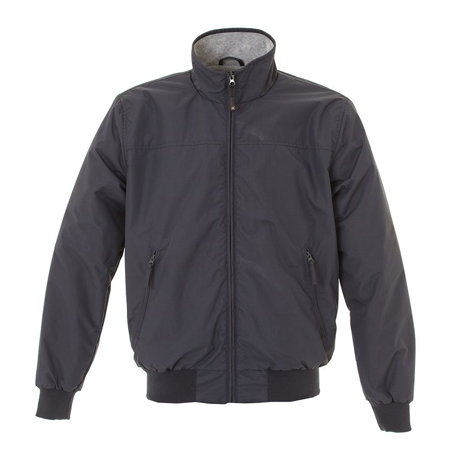 Основная ткань: цвет, близкий к Pantone 432 С, подкладка: цвет, близкий к Pantone Cool Gray 5 C Стильная куртка бомбер из водоотталкивающей ткани. Подкладка становой части выполнена из мягкого флиса, а подкладка рукавов из полиэстера и наполнителя. Два боковых кармана на молнии. Один внутренний карман на липучке. Низ рукавов и низ изделия, обработаны резинкой (риб 1х1).
