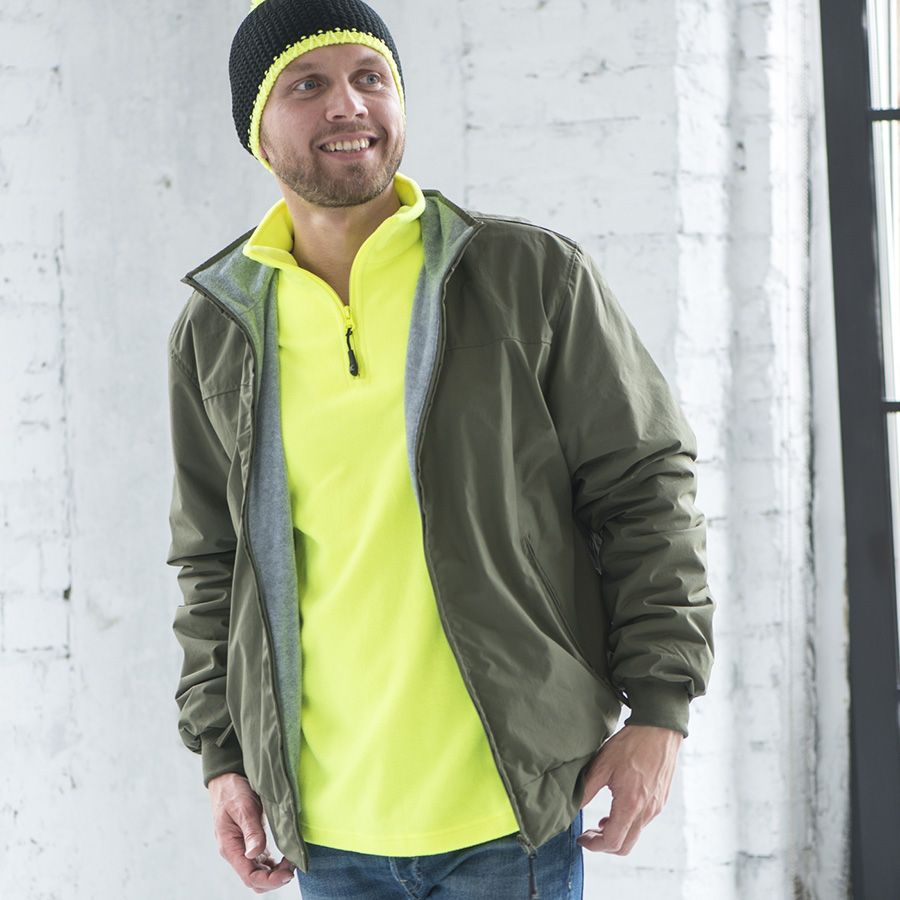 Основная ткань: цвет, близкий к Pantone 3506 C, подкладка: цвет, близкий к Pantone Cool Gray 5 C Стильная куртка бомбер из водоотталкивающей ткани. Подкладка становой части выполнена из мягкого флиса, а подкладка рукавов из полиэстера и наполнителя. Два боковых кармана на молнии. Один внутренний карман на липучке. Низ рукавов и низ изделия, обработаны резинкой (риб 1х1).