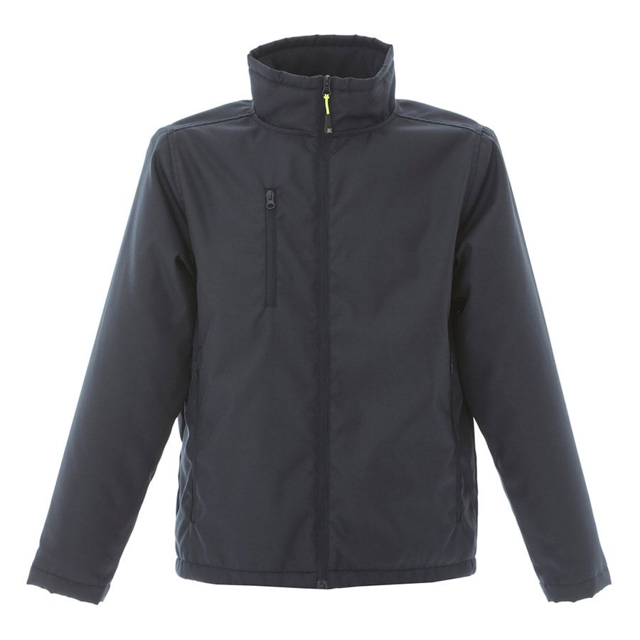 Цвет, близкий к Pantone 296 C. Водоотталкивающая куртка с флисовой подкладкой. Один нагрудный и два боковых кармана на молнии. Внутренний карман на липучке. Утягивающий шнурок по низу куртки. Регулируемые манжеты на липучке.