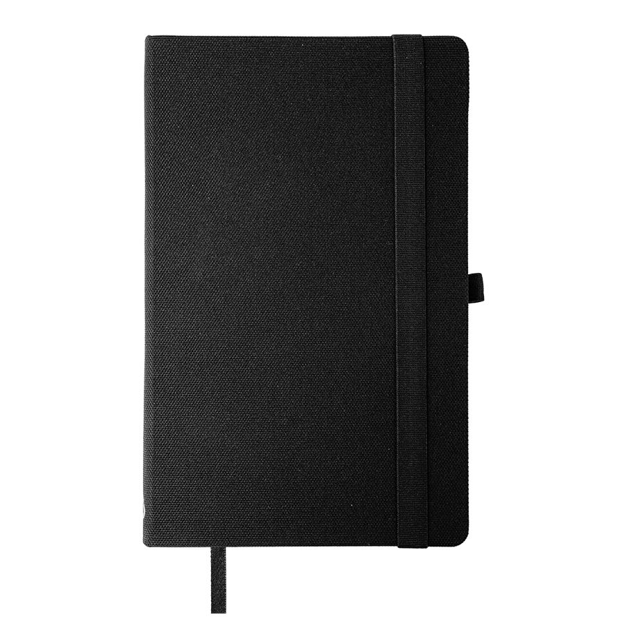 100% эко-блокнот Размер: 130х210 мм Переплет: твердый Обложка: RPET рециклированный полиэстер, полученный из переработанных пластиковых бутылок Материал сертифицирован в Нидерландах по Global Ecological Standard Отделка: жаккардовая резинка 12 мм и пенхолдер в тон обложки Форзац нахзац: кремовый Блок: недатированный Разлиновка: в линейку Количество страниц: 256 Углы блока: скругленные Цвет бумаги: кремовый Плотность бумаги: 70г м2 Ляссе: в тон обложке Карман для визиток: есть Упаковка: фирменный сливбокс thINKme