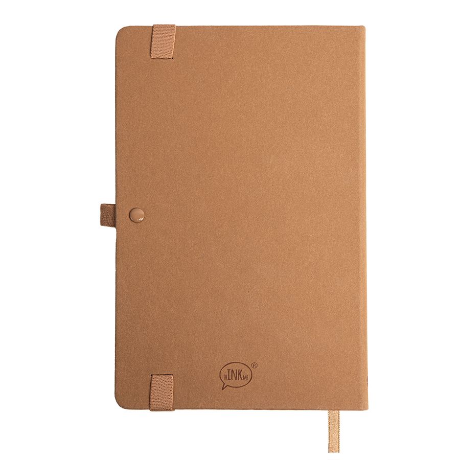 Размер: 130х210 мм Переплет: твердый Обложка: рециклированная бумага марки Naturals Neenah США Отделка: жаккардовая резинка 12 мм и пенхолдер в тон обложки Форзац нахзац: кремовый Блок: недатированный Разлиновка: в линейку Количество страниц: 256, из них: 208 стр FSC кремовая бумага, 48 стр рециклированная коричневая бумага Углы блока: скругленные Цвет бумаги: кремовый Плотность бумаги: 70г м2 Ляссе: в тон обложке Карман для визиток: есть Упаковка: фирменный сливбокс thINKme