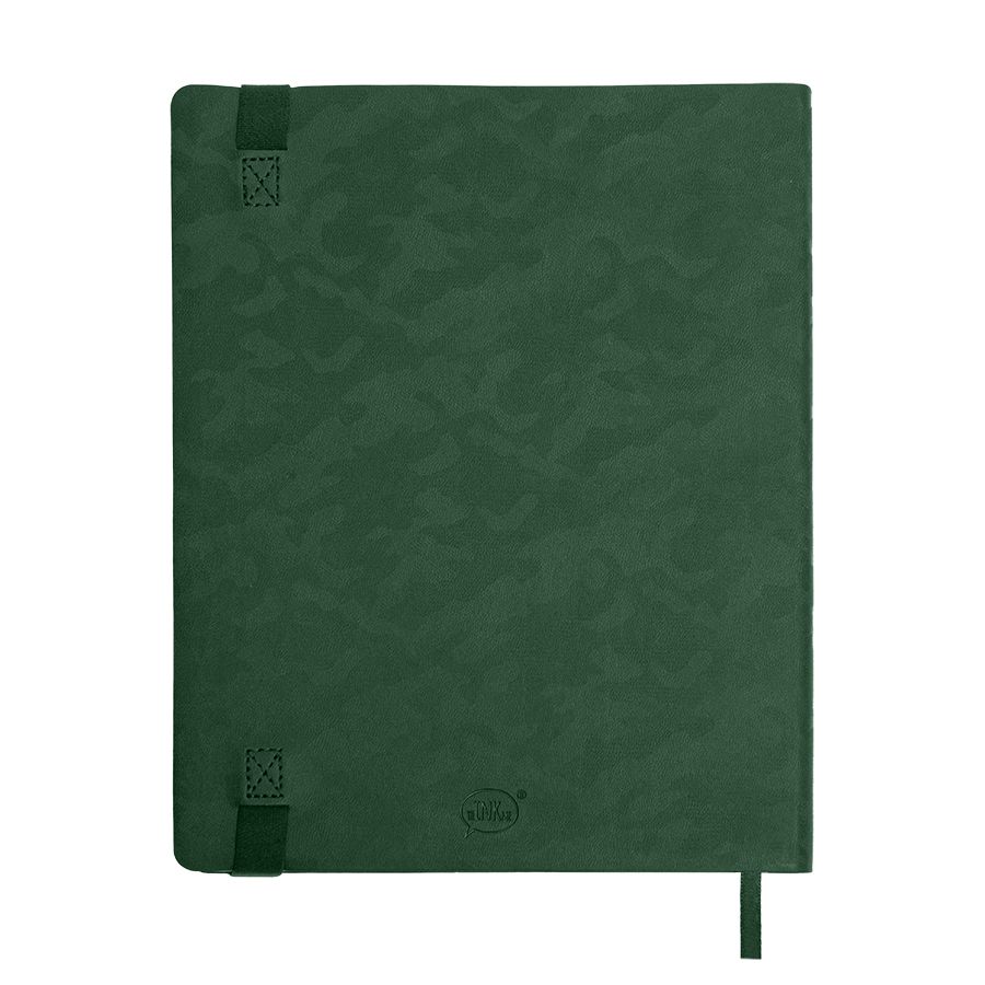 Эксклюзивный ультрамодный блокнот ipad-size с паттерном камуфляж FSC сертификат Гибкая термоактивная обложка PU Camou эксклюзивно для thINKme Эластичная soft-touch резинка 15 мм в тон обложке Конверт для записок Пантон, близкий к 3435C Кремовая бумага (блок 70 гр, форзац 160 гр) Блок 256 стр. в клетку Перфорация 8 последних листов Ляссе в тон обложки Практичные закругленные углы Надежный прошитый переплет Упаковка: фирменный слив-бокс