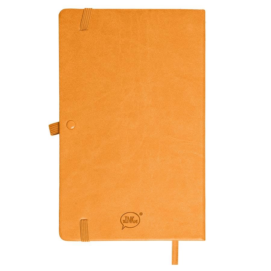 Самый популярный блокнот в твердой обложке, с эластичной резинкой, пенхолдером и ляссе в тон. Термоактивный классический PU материал Velvet Цвет обложки, близкий к Pantone 158C Внутренний блок 256 страниц в линейку Идеально скругленные углы блока Перфорированные 8 последних листов Кремовая FSC бумага 70г м2 Карман для мелочей Индивидуальная упаковка: фирменный сливбокс thINKme