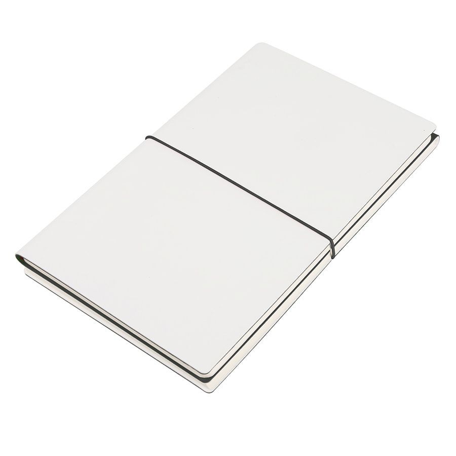 COMBI – Размер блокнота 130*210 мм- два направления открытия блокнота: с лицевой стороны – традиционное горизонтальное раскрытие, с оборотной стороны – вертикальное раскрытие, а-ля блокнот «reporter».- два разных материала обложки: с лицевой стороны – имитирующий настоящую кожу PU Shevret (цвет - белый),с оборотной стороны - яркий PU Silk Plus (цвет черный). - два разных внутренних блока по 96 страниц соединены под одной обложкой:первый блок - в клетку, второй – нелинованный c перфорацией.Гибкий переплет. Горизонтальная резинка с PU клипом с функцией пенхолдераИдеально скругленные углы блока. Кремовая eco-friendly эвкалиптовая FSC бумага 70 г м2.