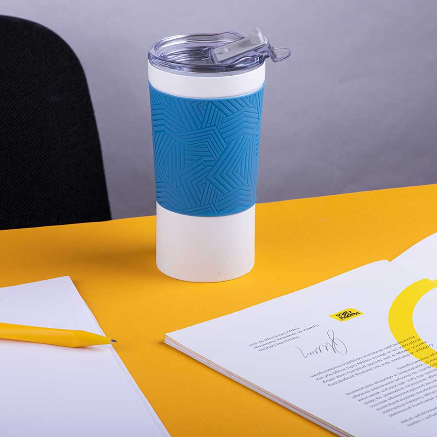 Вакуумная термокружка с покрытием "ice flower" и силиконовой манжетой.Закручивающаяся крышка выполнена из высококачественного прозрачного пластика - тритан.Сохраняет температуру горячих напитков до 6 часов, холодных напитков - до 8 часов.Подходит для автомобильных подстаканников. Цвет близкий к pantone 355C.