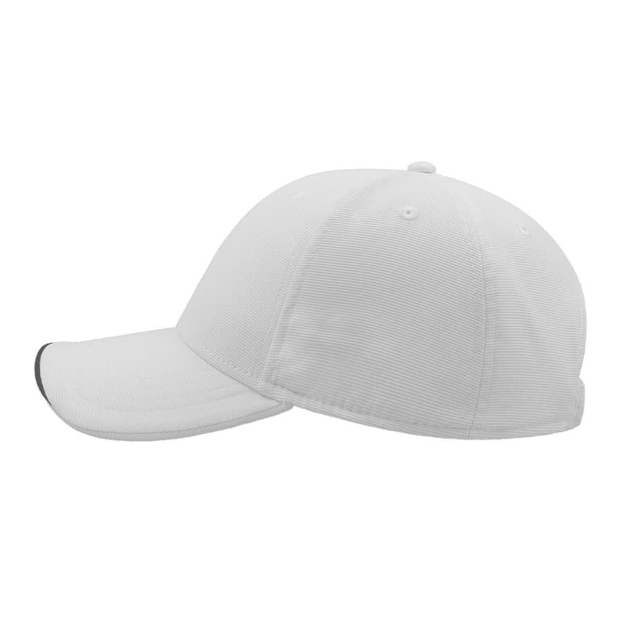 Плотная жаккардовая бейсболка ESTORIL с декоративным кантом по центру козырька. - 6 клиньев,- лобовой шов,- 6 вышитых люверсов для лучшей вентиляции,- изогнутый козырек с полной прострочкой,- контрастный кант в центральной части козырька.- застежка на липучке.Цвет близкий к Pantone White58,5 см - средний размер, с помощью застёжки его можно увеличить или уменьшить до необходимого.