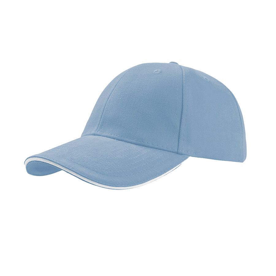 Бейсболка LIBERTY SANDWICH из плотного хлопка - одно из лучших решений для промомероприятий и корпоративной формы: - 6 клиньев, - 6 вышитых люверсов для лучшей вентиляции, - изогнутый козырек «сэндвич» с декоративным кантом, - металлическая застежка.Допустим незначительный разнотон.Цвет бейсболки близкий к Pantone 645 С или 2169 C; цвет канта близкий к Pantone White 58,5 см - средний размер, с помощью застёжки его можно увеличить или уменьшить до необходимого.