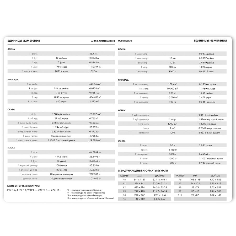 Цвет обложки, близкий к пантону 425C Размер 145*205 мм Переплет твердый, прошивка по периметру обложки Обложка PU Velvet Блок недатированный, в линейку, скругленные углы Бумага белая, плотность 70 г м2 272 страницы Каптал и ляссе в цвет обложки Упаковка прозрачный полибэг В данный момент происходит смена справочной части блока. Внешний вид изделия остается без изменений.