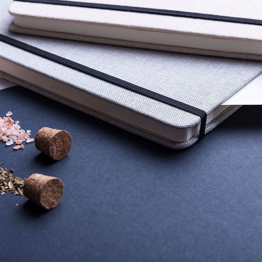 Эко-блокнот Обложка из натурального хлопка Твердый переплет Вертикальная резинка Бумага белая Нелинованный блок 160 стр.