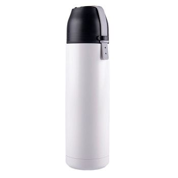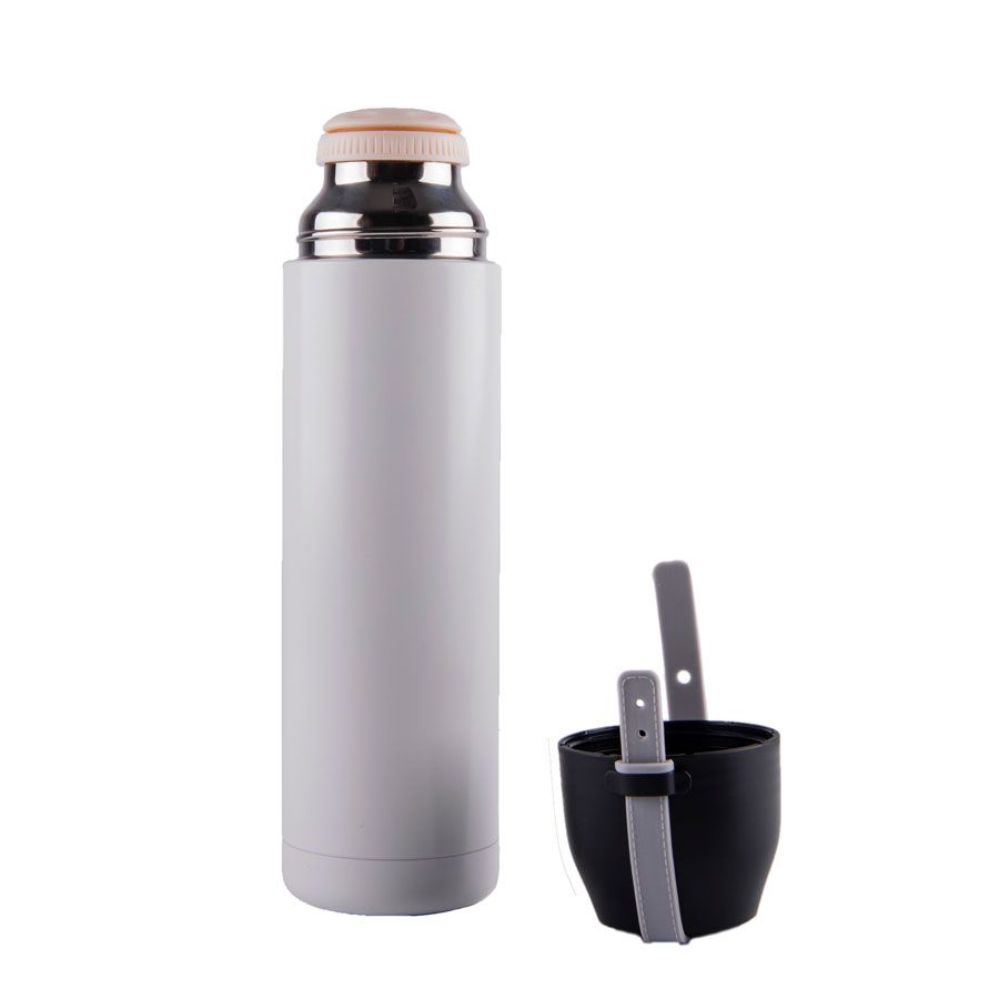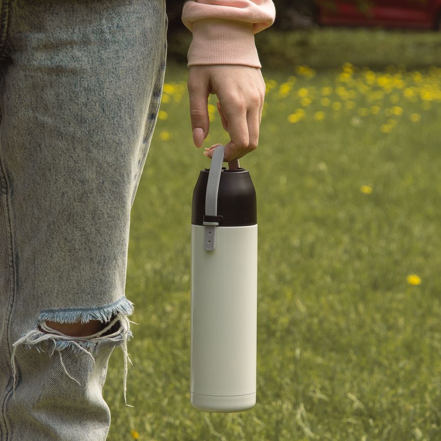 Вакуумный термос Rope с двойными стальными стенками. Важная деталь - ремешок - является не только декором, но и выполняет роль ручки. Для этого нужно застегнуть ее на дальнее отверстие. Сохраняет тепло до 12 часов в зависимости от температуры окружающей среды.