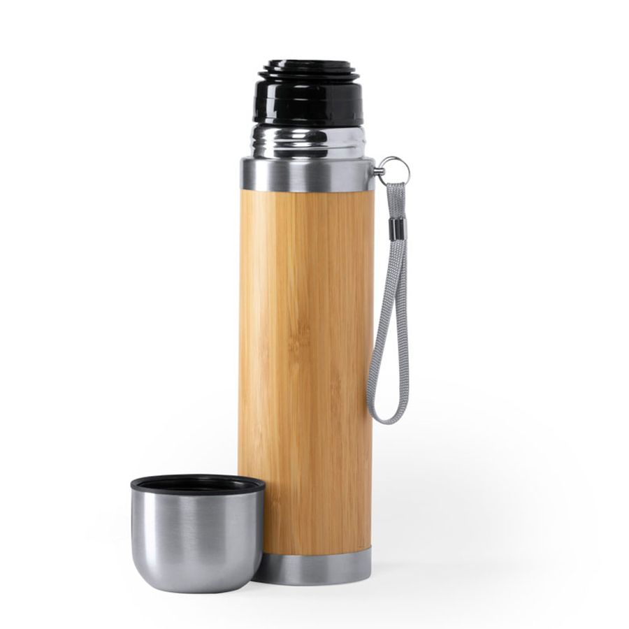 Термоc TIAKY объемом 420 мл в сочетании материалов из бамбука и нержавеющей стали. Не содержит бисфенола А, двойные стенки для лучшего и длительного сохранения температуры жидкости. Винтовой механизм закрытия, включая крышку стакан из нержавеющей стали. С ручкой для переноски. Упакован в индивидуальную коробку с эко-дизайном. Диаметр 6,5 см, вес 360 г.