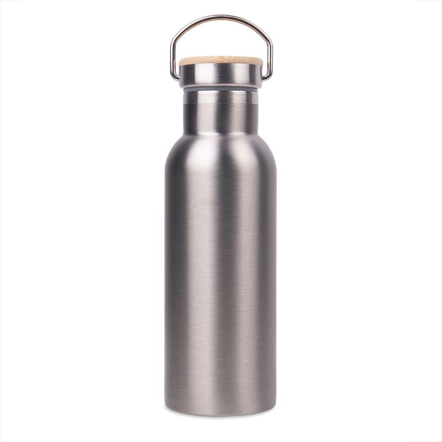 Бутылка для воды с двойными стенками из нержавеющей стали.Держатель на крышке для удобства переноски.Верхняя часть крышки из бамбука, отлично подходит для персонализацииБлагодаря двойным стенкам, температура напитка в бутылке будет в полной сохранности на протяжении 2-3 часов.Индивидуальная упаковка - коробка из крафтового картона