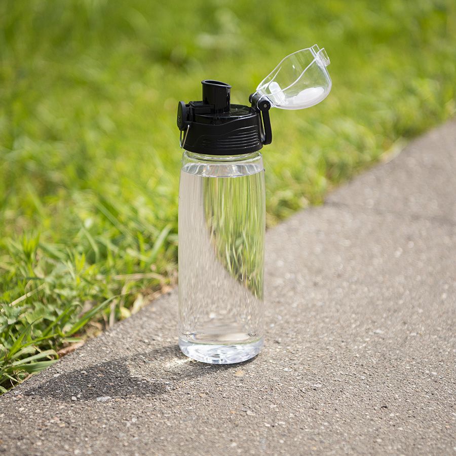 Бутылка с откидной крышкой, которая имеет фиксатор от случайного открытия.