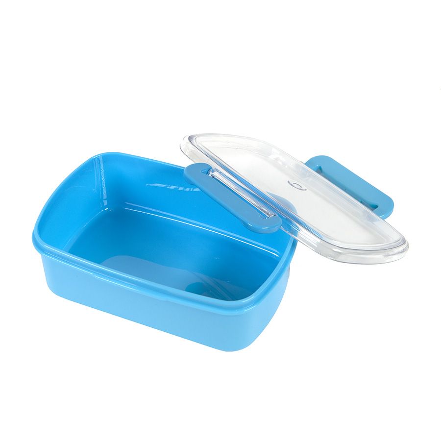 Ланч-бокс с прозрачной крышкой. Не герметичный. Подходит для использования в микровоолновой печи (со снятой крышкой), в посудомоечной машине, в морозильной камере. Цвет близкий к Pantone 306C Корпус выполнен из PP-пластика. BPA-free (не содержит бисфенол А).