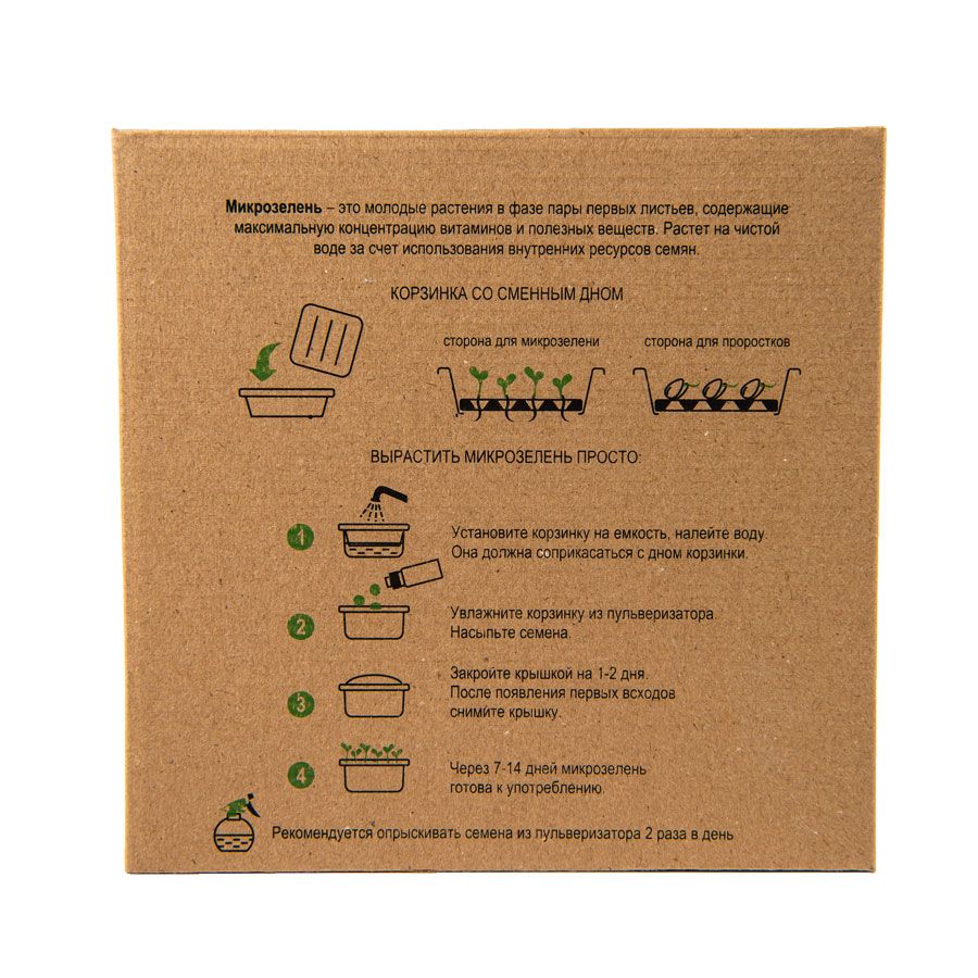 Проращиватель «Моя микрозелень» подходит для выращивания сочной микрозелени и проростков.Микрозелень – молодые всходы растений в фазе первых двух листочков, содержащие максимальную концентрацию витаминов и полезных веществ. Растет на чистой воде за счет использования внутренних ресурсов семян. Комплектация набора: - крышка, - корзинка, - сменное дно, - емкость для жидкости. Проращиватель подходит как для крупных семян, так и для самых мелких. Для выращивания микрозелени установите сменное дно широкими бороздами вверх. Для проростков - широкими бороздами вниз.