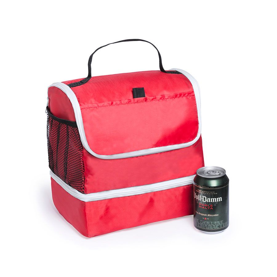 Универсальная сумка-холодильник из полиэстера 210D с двумя независимыми отделениями на молнии. С передним карманом на липучке и боковым карманом из эластичной сетки. Изотермический внутри в отделке PEVA. С практичной ручкой для переноски из прочного нейлона.