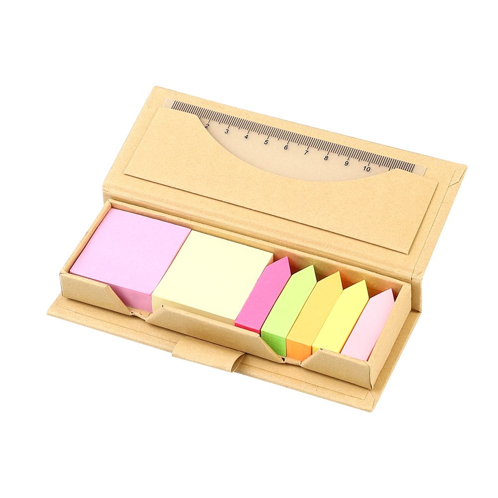 Незаменимый помощник для создания пометок и напоминаний канцелярский набор из цветных стикеров Boxer. В бумажной коробке помещается 5 видов малых стикеров, отличающихся цветом размером 12х43мм, два больших стикера желтого и розового цвета размером 40х43мм, все по 100 клейких листов. А также удобная компактная линейка из прозрачного пластика.