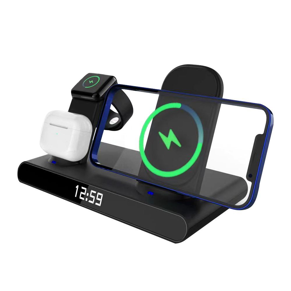 Часы электронные Abbatt мультифункциональные с беспроводной зарядкой мощностью 10W. Особенность этих электронных часов заключается в том, что они выполянют функцию не только часов и будильника, а еще с их помощью можно заряжать свои гаджеты. Удобство беспроводной зарядки говорит само за себя - очень комфортно заряжать смартфон, часы и наушники, просто положив их на зарядную станцию, не подключая при этом к ним никаких кабелей. Также есть возможность быстрой зарядки Qi. При беспроводной зарядке устройство меньше подвержено перепадам в сети, чем при подключении к розетке, тем самым увеличивается срок службы аккумулятора. Благодаря интерфейсу Type-C (шнур идёт в комплекте 1м) ваши гаджеты будут заряжаться более эффективно, а главное - одновременно. Вы можете смотреть фильмы, слушать музыку, звонить или отправлять сообщения во время всего процесса зарядки. Входы: 9V/2A 12/2A. Выходы: Беспроводной 10W / 7.5W / 5W / USB 5V / 0.8-1A / Airpod 3W / Apple watch 2.5W. Совместимость с Apple 8 и выше.