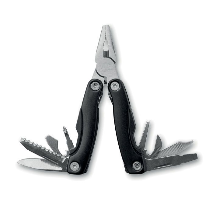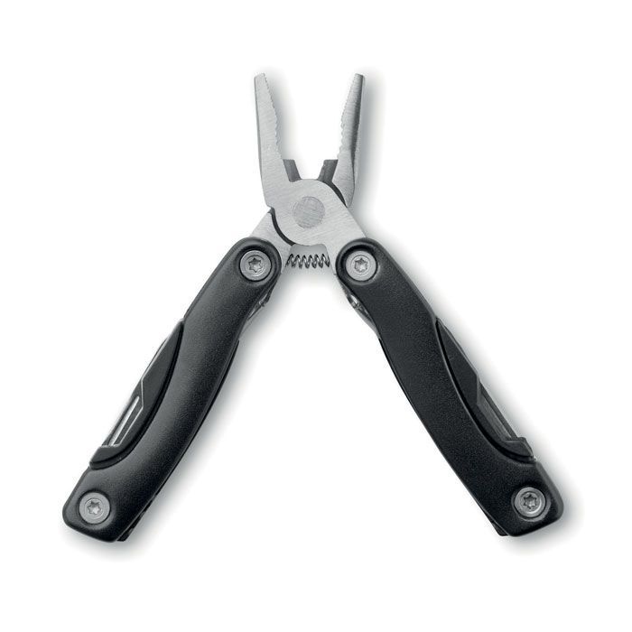 Складной многофункциональный инструмент из нержавеющей стали с рукояткой из пластика. 9 функций. Чехол из полиэстера.