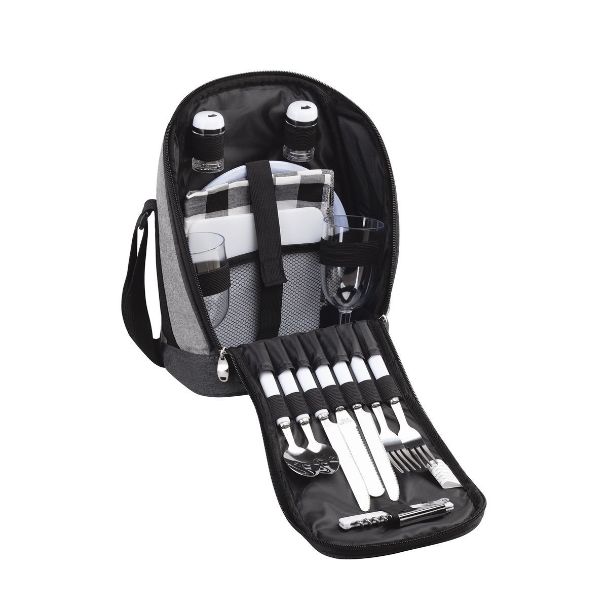 Набор для пикника "Австрия" рассчитан на 2 персоны. Все предметы в наборе фиксируются внутренними резинками.