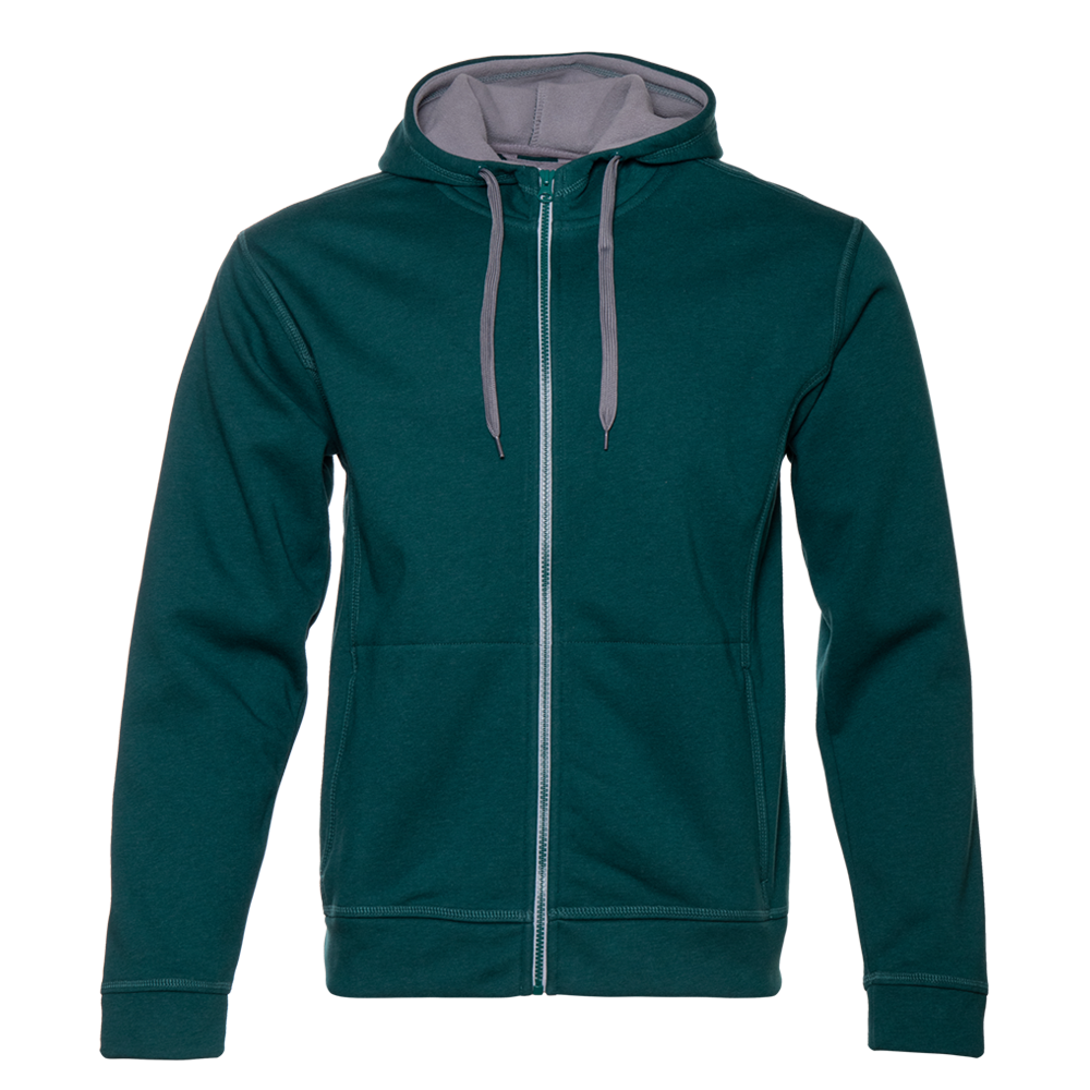 Мужская толстовка прямого силуэта с капюшоном комфортной глубины, втачным рукавом, прорезным карманов и застежкой на контрастную молнию. Капюшон дополнен плоским шнурком для регулировки прилегания, манжет и низ изделия выполнены из основного полотна.