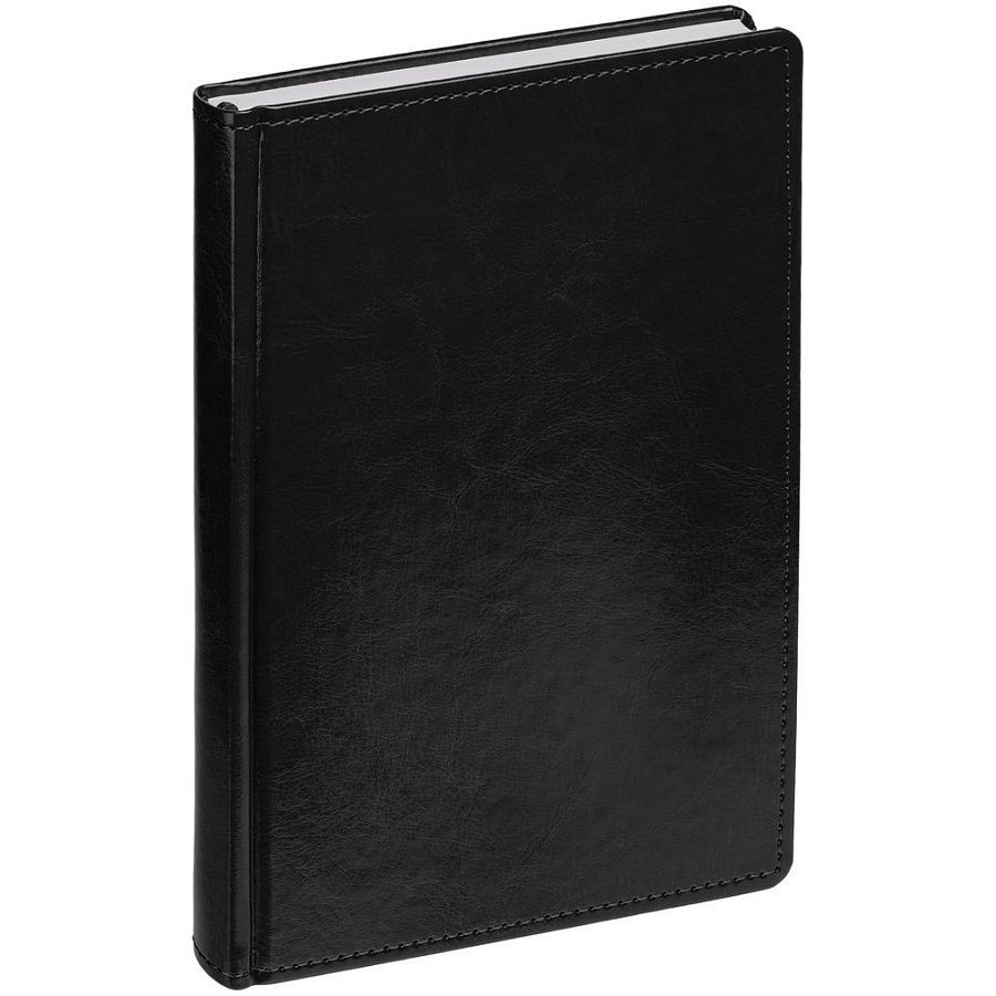 Ежедневник с твердой обложкой без поролона, выполнен из материала Nebraska, черный АА, дополнен ляссе и капталом в цвет обложки.