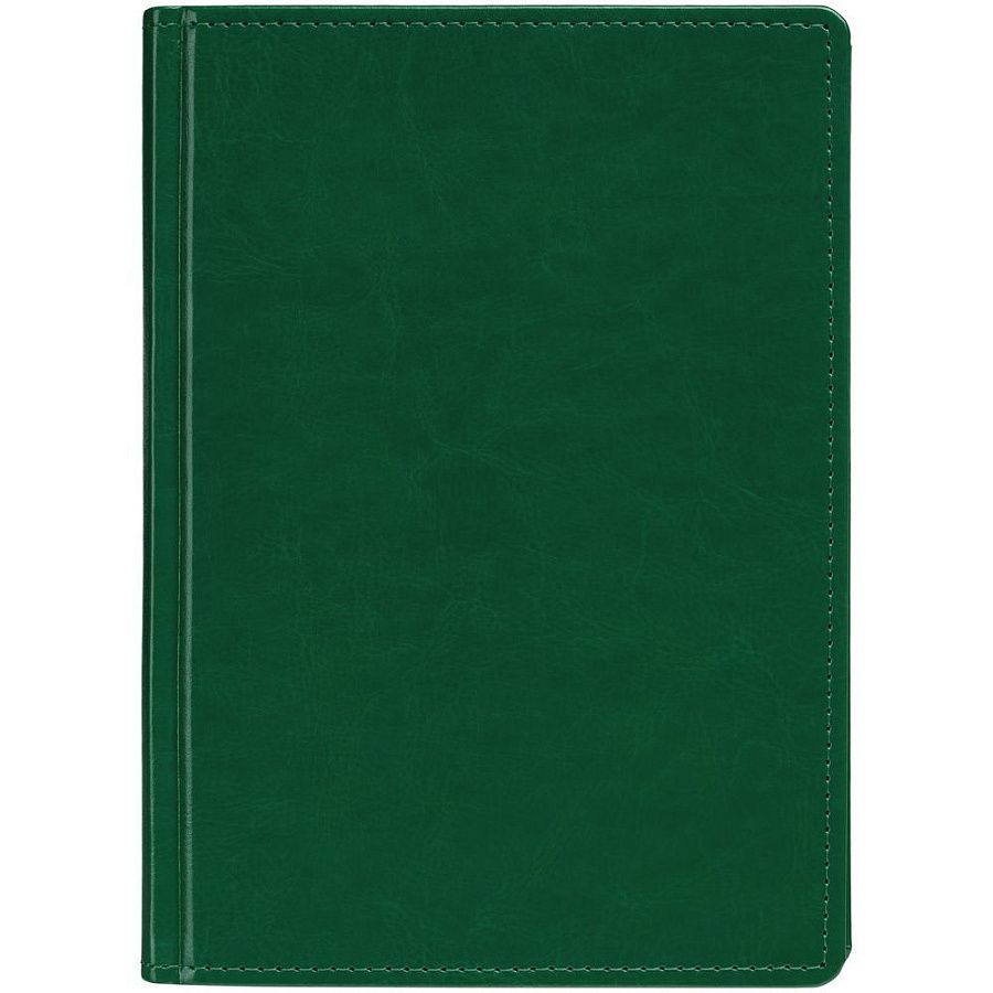 Ежедневник с твердой обложкой без поролона, выполнен из материала Nebraska, зеленый FF, дополнен ляссе и капталом в цвет обложки.
