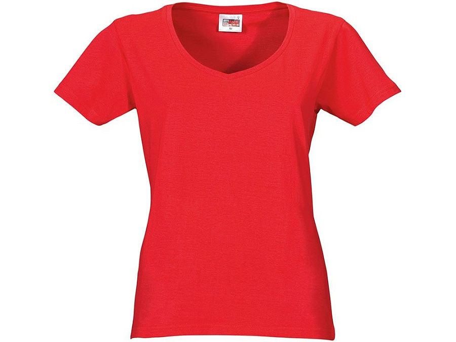 Женская футболка из натурального хлопка с элегантным V-образным вырезом. Материал отлично подходит для нанесения рекламной информации. Натуральная ткань не вызывает раздражения кожи.