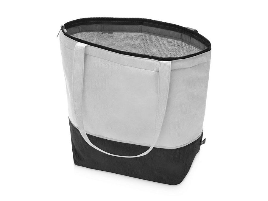 Вместительная сумка-холодильник из переработанного пластика. Удобные длинные ручки для ношения на плече. Застегивается на молнию.