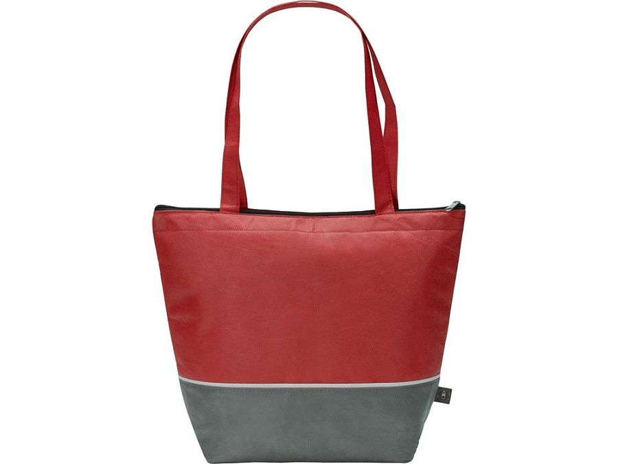 Вместительная сумка-холодильник из переработанного пластика. Удобные длинные ручки для ношения на плече. Застегивается на молнию.