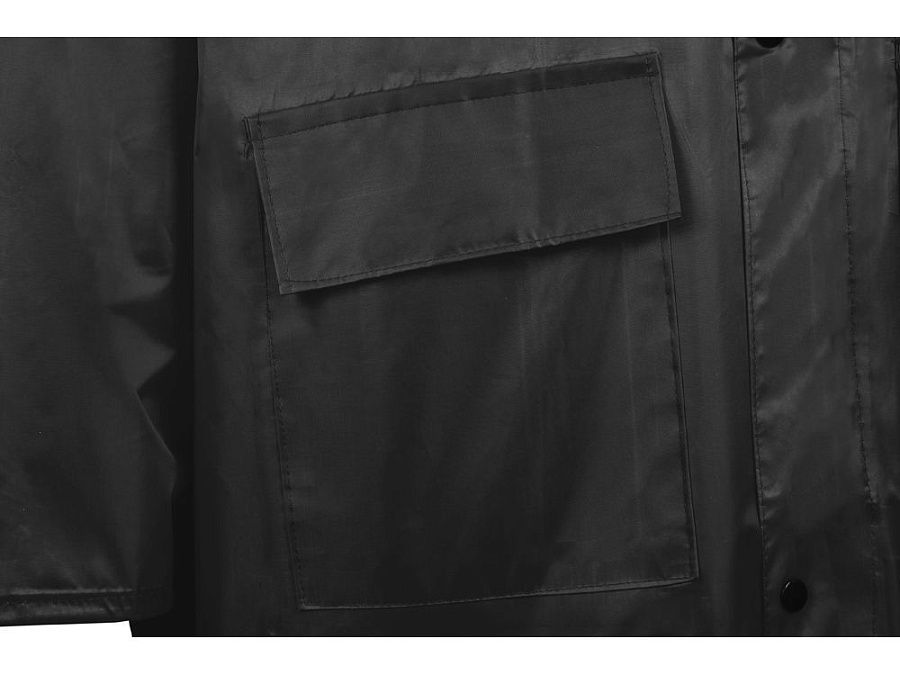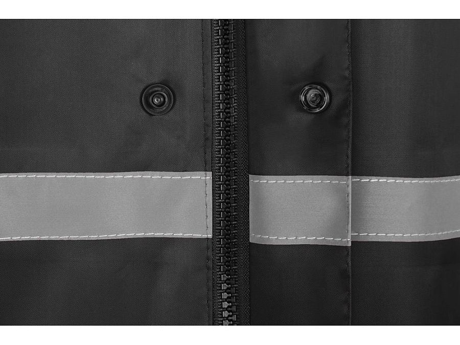 Светоотражающая тесьма на груди и спине делает человека в плаще заметным даже в темное время суток. Вместительные накладные карманы защищены сверху клапаном.