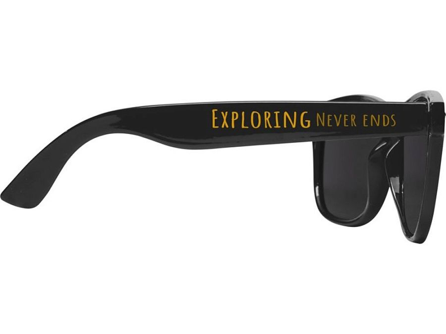 Эти солнцезащитные очки в ретро-стиле, изготовленные согласно принципам устойчивого развития, являются идеальным сувениром, который можно подарить во время промо-акций на летних фестивалях, мероприятиях и во время других событий на свежем воздухе в солнечную погоду. Благодаря переработанному РЕТ-пластику эти солнцезащитные очки легкие и удобные. Эти очки соответствуют стандарту EN ISO 12312-1, имеют линзы со степенью защиты UV400, которые относятся к категории 3, что делает их идеальным выбором для защиты от яркого солнечного света.