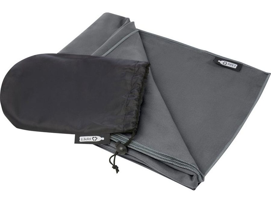 Это спортивное полотенце очень хорошо впитывает влагу, легкое, быстро сохнет. Кроме того, ткань прочная и чрезвычайно мягкая. Когда полотенце сложено и закреплено резинкой, оно уменьшается до небольшого размера, поэтому его удобно брать с собой в тренажерный зал, бассейн, на пешую прогулку или в поход. Полотенце имеет размер 130 x 80 см и изготовлено из переработанного РЕТ-полиамида плотностью 200 г/м2, его можно стирать в стиральной машине при 40 °C. Поставляется с сумкой для хранения (20 x 8,5 см) из переработанного РЕТ-пластика, на которой достаточно места для нанесения логотипа.