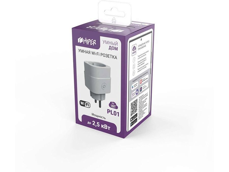 Умная розетка HIPER IoT PL01 предназначена для удаленного включения/выключения электроприборов, а также для поддержки исполняемых сценариев.