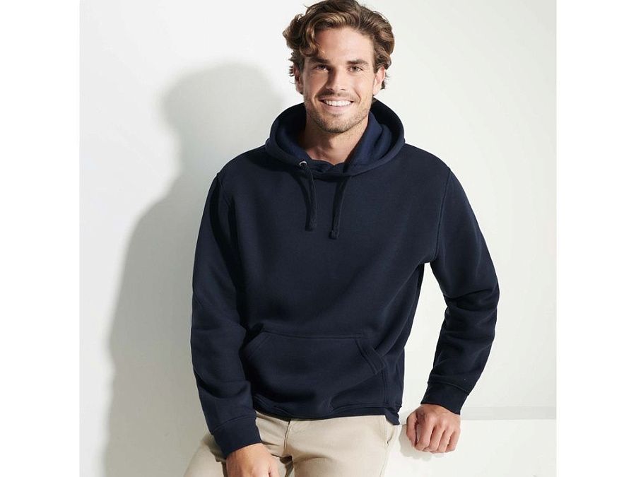 Толстовка с капюшоном, карман кенгуру на полочке. Эластичный риб1х1 по манжетам и низу изделия.