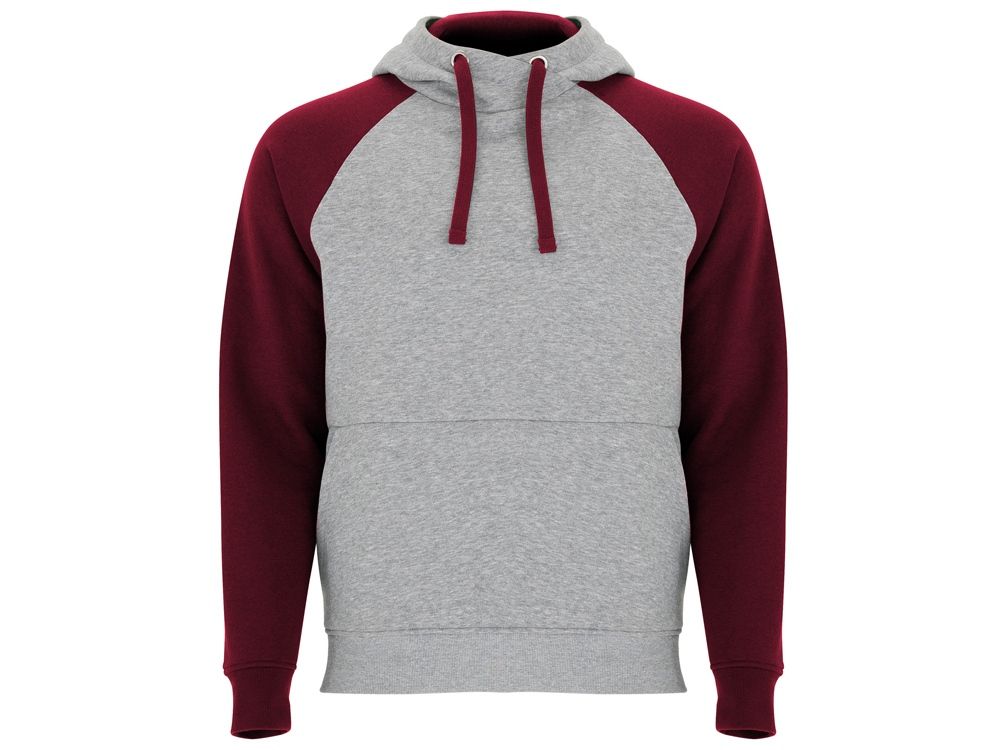 Худи с контрастным рукавом реглан. Капюшон с запахом, с контрастной подкладкой и шнурком. На полочке карман кенгуру. Манжеты рукавов и низ изделия из риба 1х1.