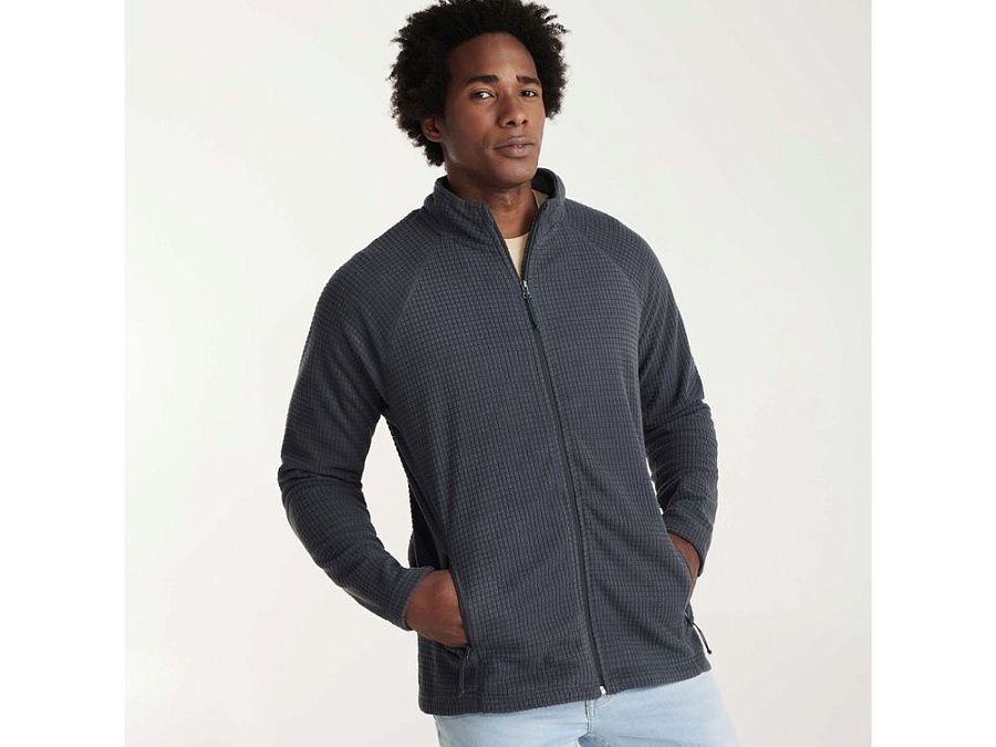 Флисовая куртка с рукавом реглан из полотна со структурой рипстоп (клеточка). Центральная застежка и карманы на молнию в тон. Боковые швы переведены на полочку. Манжеты с разрезом для большого пальца.