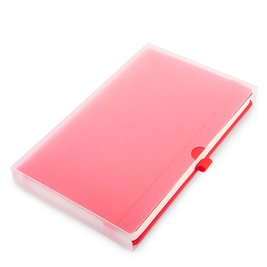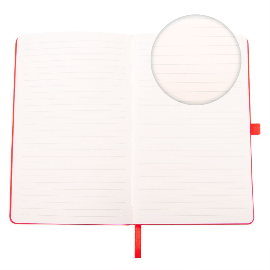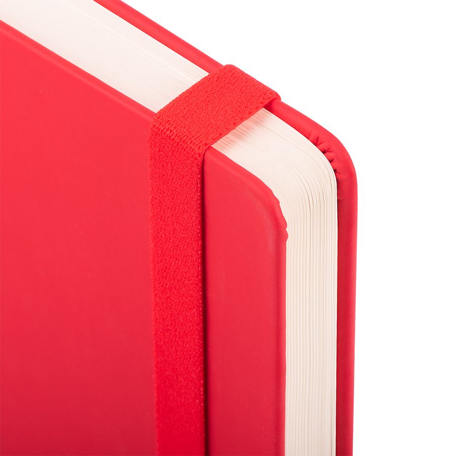Самый популярный блокнот в твердой обложке, с эластичной резинкой, пенхолдером и ляссе в тон.Термоактивный классический PU материал Silk PlusЦвет обложки, близкий к Pantone 200СВнутренний блок 256 страниц в линейкуИдеально скругленные углы блокаПерфорированные 8 последних листовКремовая FSC бумага 70г м2Карман для мелочейИндивидуальная упаковка: прозрачный сливбокс