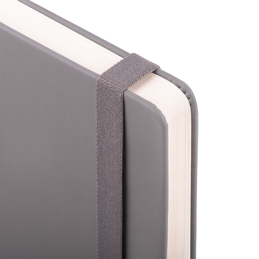 Самый популярный блокнот в твердой обложке, с эластичной резинкой, пенхолдером и ляссе в тон.Термоактивный классический PU материал Silk PlusЦвет обложки, близкий к Pantone 423CВнутренний блок 256 страниц в линейкуИдеально скругленные углы блокаПерфорированные 8 последних листовКремовая FSC бумага 70г м2Карман для мелочейИндивидуальная упаковка: прозрачный сливбокс