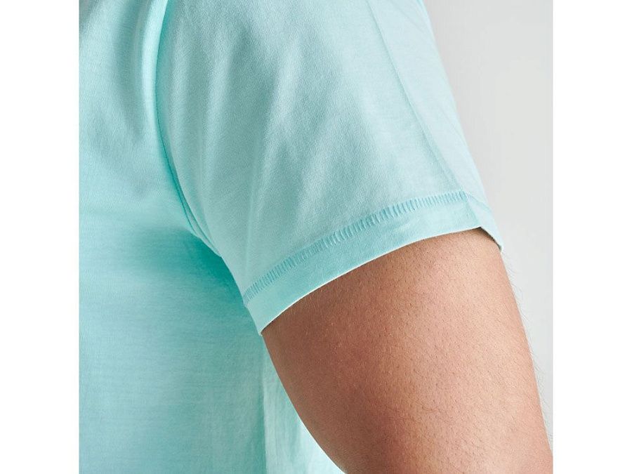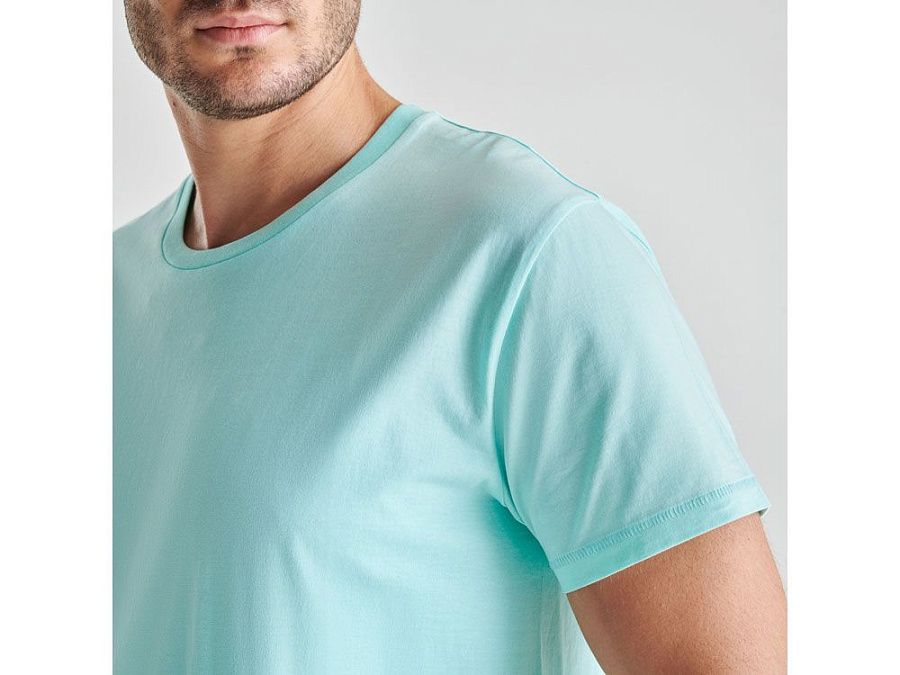 Бесшовная мужская футболка с коротким рукавом из органического хлопка. Круглый вырез горловины обработан рибом 1х1. Декоративные отделочные швы по низу изделия и рукава.