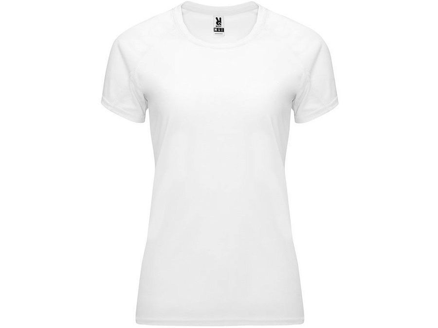 Спортивная футболка с коротким рукавом реглан для женщин. Круглый вырез горловины с отделкой плоским швом. Рукав сложного кроя для обеспечения дополнительного удобства при занятиях спортом. Отделка плоским швом с застилом по пройме и рукавам.