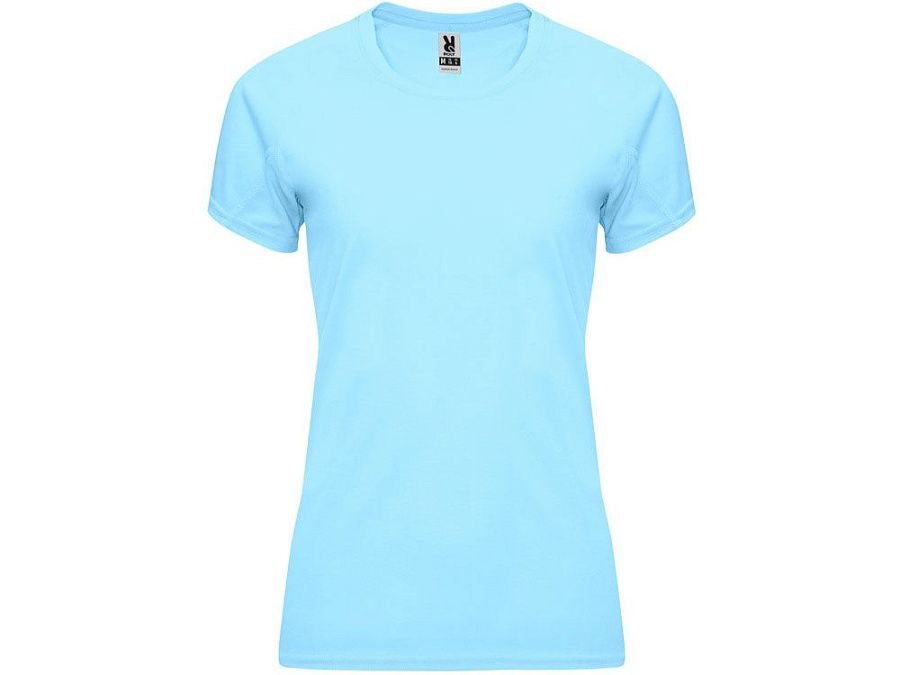 Спортивная футболка с коротким рукавом реглан для женщин. Круглый вырез горловины с отделкой плоским швом. Рукав сложного кроя для обеспечения дополнительного удобства при занятиях спортом. Отделка плоским швом с застилом по пройме и рукавам.