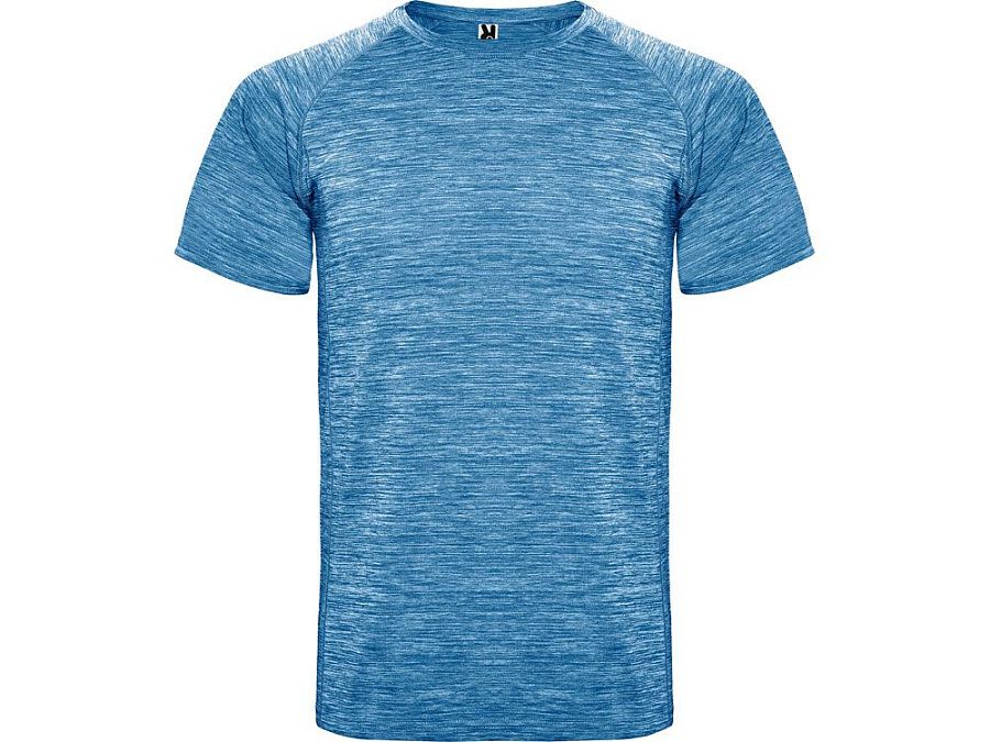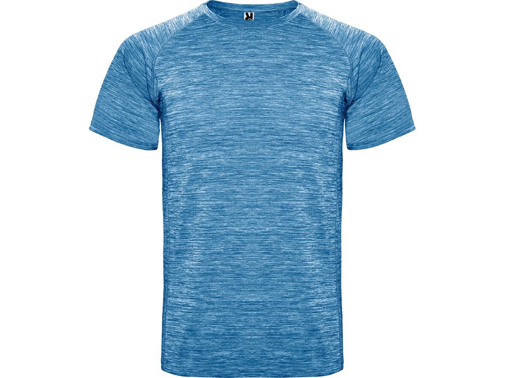 Спортивная футболка из полиэстерового полотна с рукавом реглан. Круглый вырез горловины. Легко сохнущее дышащее полотно с красивым меланжевым эффектом.
